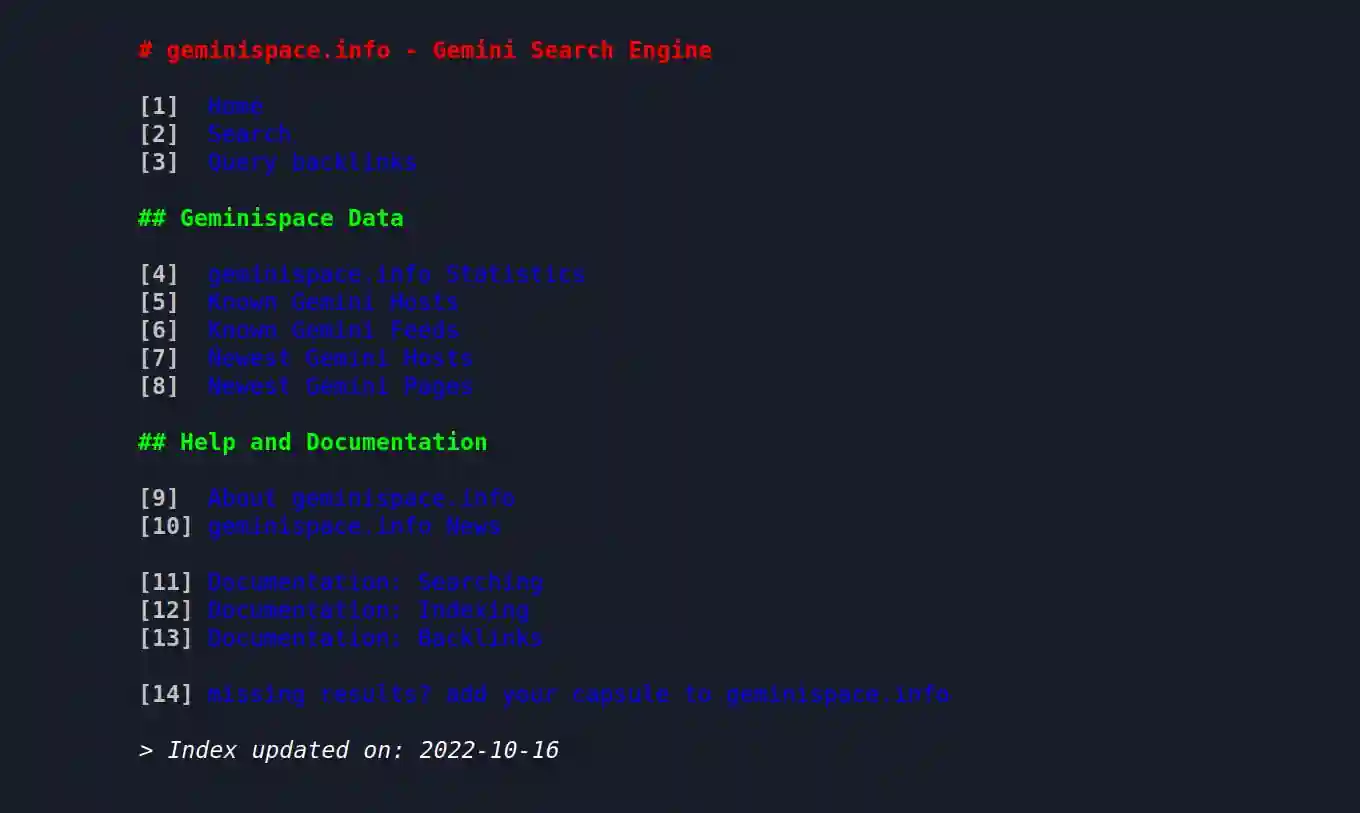 Gemini es una vuelta de tuerca de Gopher, recupera lo que internet perdió con el protocolo HTTP. Se aleja del concepto de «multimedia», de lo visual, llena de scripts y rastreadores que dejan la privacidad en un estado testimonial.