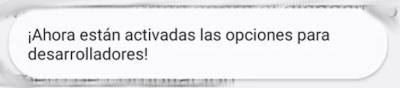 Una vez ahí, pulsamos sobre el número de compilación siete veces. Mientras pulsamos, nos saldrán mensajitos hasta que aparezca el mensaje «Activadas las opciones de desarrollador», o algo similar ya que puede cambiar con cada dispositivo. Incluso debes introducir el pin para activarlas una vez hecho el procedimiento.