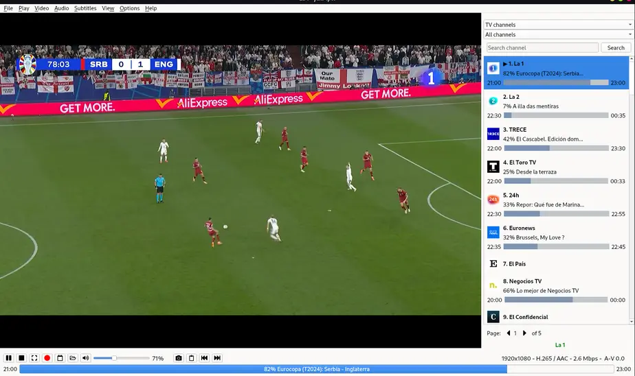 No suelo ver la tv convencional, y menos en el ordenador. Pero en ocasiones, me interesa ver algún programa o sobre todo deportes, como la NBA o la NFL. La pongo en el monitor secundario mientras «trabajo» en el otro. Ahora estoy viendo la Euro 2024.