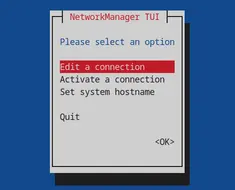 Nos sale una pantalla que parece de los 80, un menú con tres posiciones. Debemos pulsar Edit a Connection, pulsamos en la única conexión que nos aparece y pulsamos en la derecha la palabra Edit. OJO!!! se usan los cursores y el INTRO, así que cuidado.