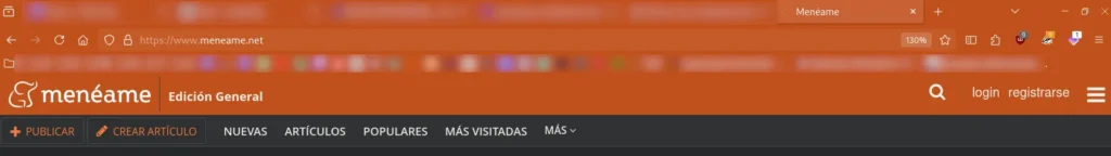 Visitando la página El Otro Lado, con colores verdes, el navegador coge el color exacto y transforma en verde con un color homogñeneop. Igualmente, debajo, conb el agregador Menéame, que usa un tono naranja, hace lo propio.