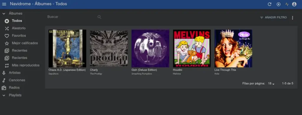 Ahora vamos a nuestra aplicación favorita, dentro de la lista que ofrece la propia Navidrome.